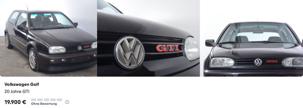 Beim Händler Garage 11 in Hamburg findet sich dieser „seltene Survivor“, ein 20 Jahre GTI mit rund 100.000 km Laufleistung. Auf den Fotos steht das Fahrzeug toll da und soll rund 20.000 Euro kosten.