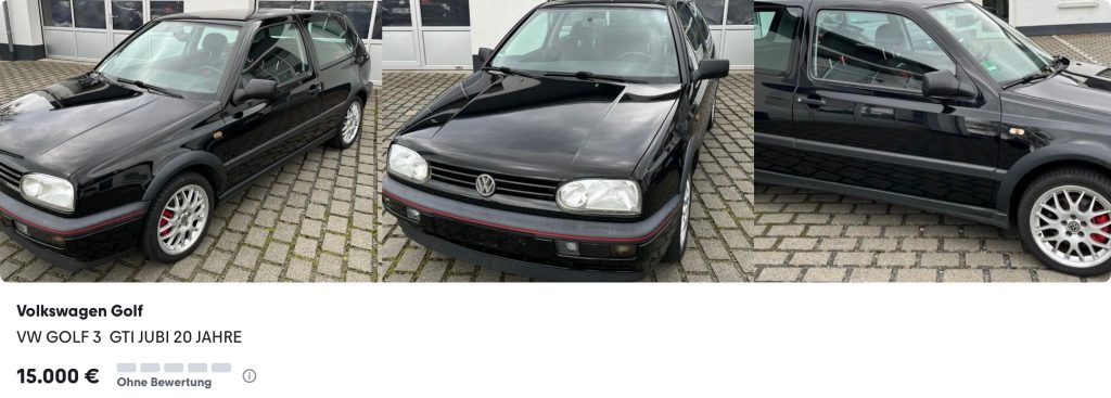 Beim Golf III tut sich was, könnte man sagen. Ich war über selbst über die Höhe des Preisniveaus Stand heute durchaus schon überrascht. Es gibt sehr reizvolle VR6-Modelle im Angebot, allerdings spiegeln deren Preise den Liebhaberstatus eindeutig wieder. Eine etwas günstigere, vielversprechende Alternative ist aus meiner Sicht das Sondermodell „20 Jahre GTI“. Gute Fahrzeuge werden derzeit zwischen 15.000 und 20.000 Euro am Markt angeboten – noch, könnte man vielleicht sagen…