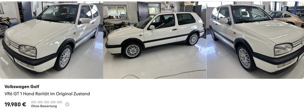Auch mit höheren Laufleistungen kosten VR6-Modelle noch gutes Geld, solange man den Suchradius auf Fahrzeuge im Originalzustand begrenzt. Hier gibt es zum Beispiel einen weißen VR6 aus erster Hand mit über 200.000 Kilometern für 20.000 Euro.
