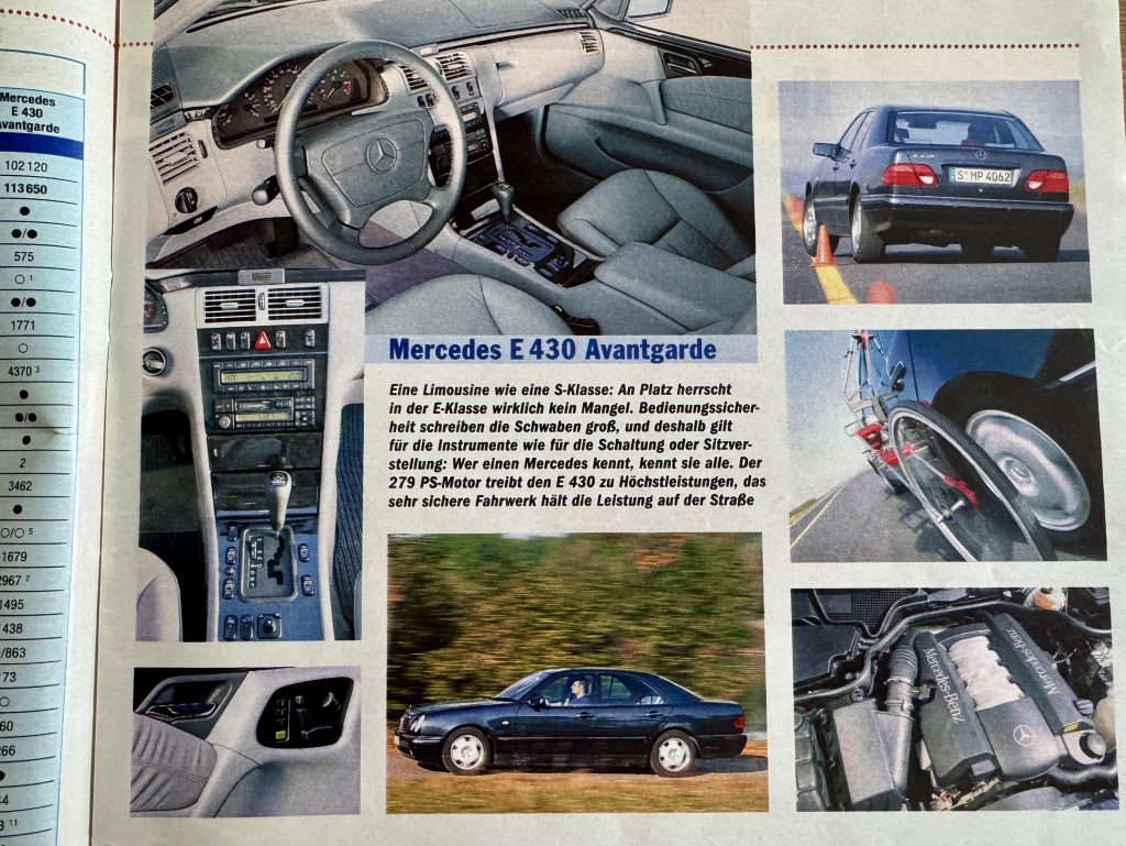Auch der Mercedes überzeugte mit seinem neuen Dreiventil-V8-Motor. Im Fahreindruck der Tester findet sich hier auch die harmonischste Kombination von Motor und Automatikgetriebe. „Die Gangwechsel sind weder unter Teil- noch Volllast wirklich spürbar, sanft schiebt die Maschine in Kickdown-Stellung voran“ (mot 24/1997, S. 30).