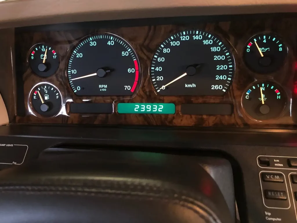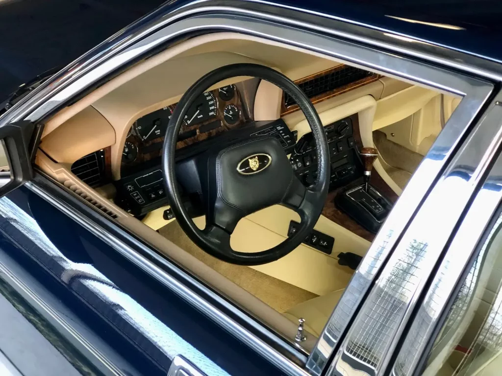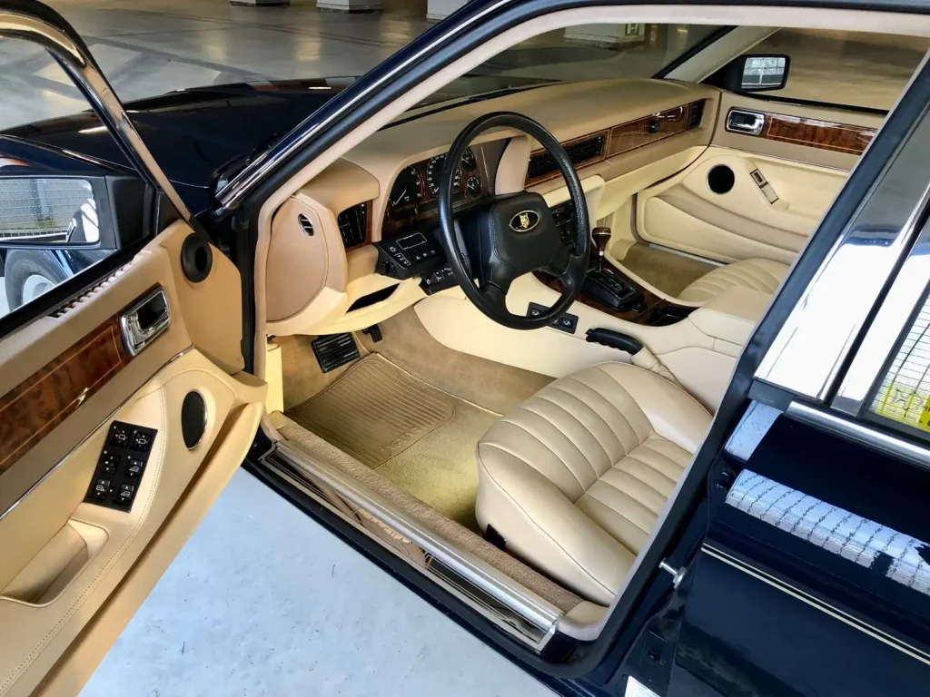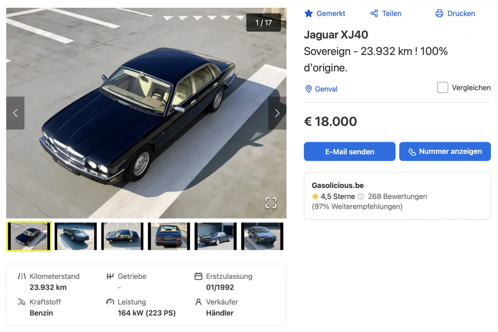 Der Jaguar XJ40 ist nicht so selten wie ein Quattroporte, aber auch er fĂ€llt sowohl im StraĂenverkehr als auch auf Youngtimer-Messen auf. Insbesondere gut erhaltene Exemplare mit geringer Laufleistung in attraktiven Farbkombinationen sind nicht hĂ€ufig anzutreffen. Alles das trifft auf dieses Fahrzeug von 1992 zu: Gerade die 20.000 Kilometer ĂŒberschritten, vollstĂ€ndig im Originalzustand, und ein Sovereign (unterhalb des Daimlers die höchste Ausstattungslinie) in einer Top-Farbkombination. Auch beim XJ40 steigen derweil die Preise fĂŒr solche Exemplare: Der HĂ€ndler Gasolicious in Belgien erfragt 18.000 Euro fĂŒr dieses Auto.