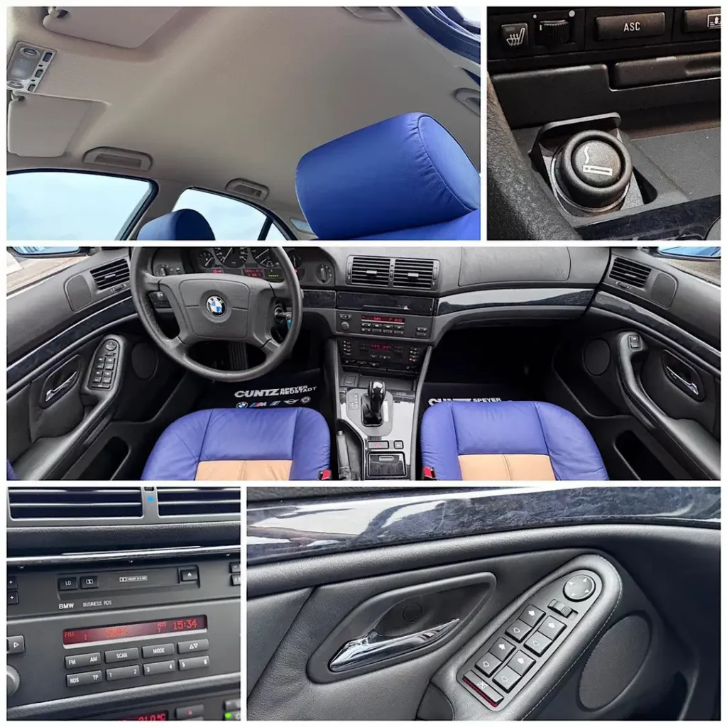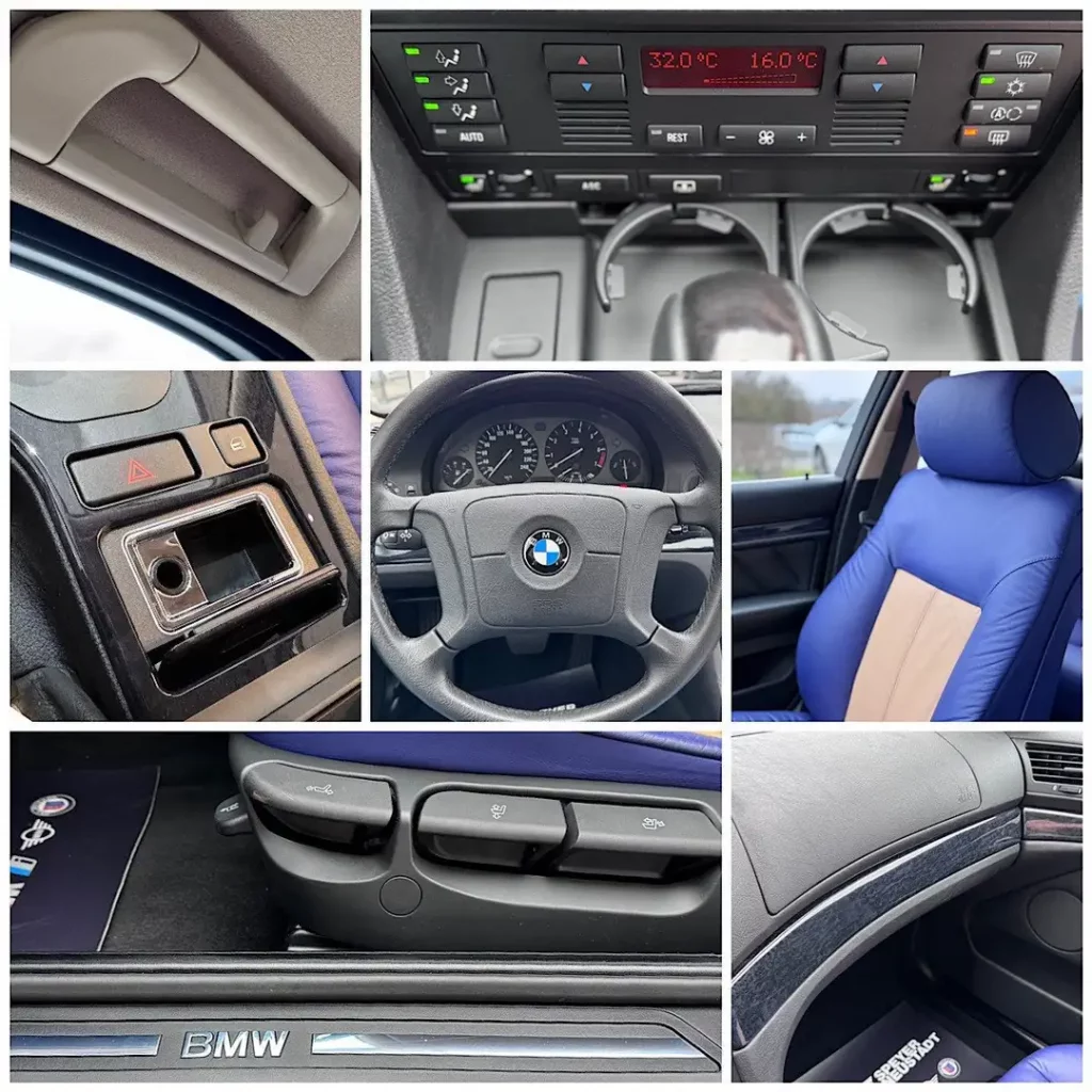 Hinzu kommt, dass es sich um Fahrzeug mit Individual-Ausstattung handelt. Das Individualprogramm wurde von BMW 1989 offiziell begrĂŒndet und war in den 90er Jahren fĂŒr 7er (E32, E38) und 5er (E34, E39 wie hier) ein Bestandteil des Angebots, um das eigene Auto ab Werk noch exklusiver gestalten zu können. Dazu gehörten typischerweise individuelle Lackierungen und mehrfarbige Lederausstattungen im Innenraum.
