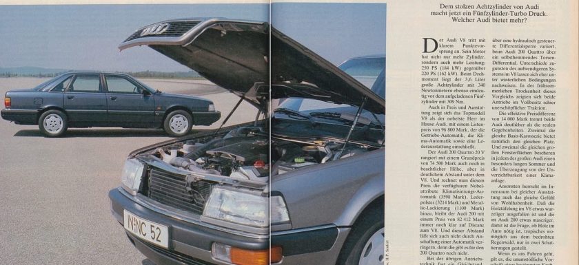 Fünf vor Acht im Jahr 1989: Der Audi 200 quattro 20V mit Fünfzylinder-Turbo im Vergleich mit dem Audi V8 3.6