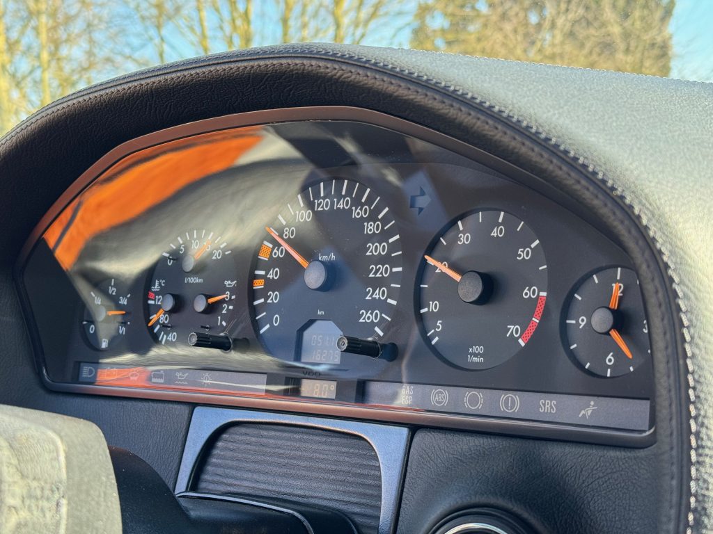 Beim 300 SE/L ist am Drehzahlmesser noch ein weiteres Detail zu erkennen: Geht der Drehzahlmesser insgesamt bis 8.000/min, handelt es sich noch um den Sechszylinder M104 mit Zündverteiler. Geht der Drehzahlmesser „nur“ bis 7.000/min, dann ist es der modifizierte M104 mit ruhender Zündung.