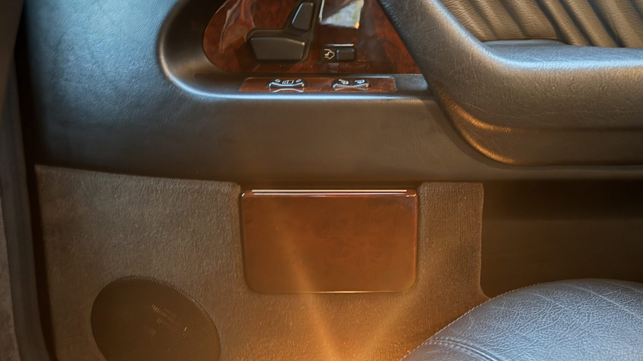 Es gibt noch ein weiteres, für Kenner gut sichtbares Erkennungsmerkmal des V12: Nur bei ihm waren die Aschenbecher in den beiden Fondtüren in Wurzelnuss ausgeführt. Das gilt für alle Generation des 600ers, vom „Vor-Mopf“ (=erste Serie vor der Modellpflege) bis zum Mopf 2 (=zweite Modellpflege im Jahr 1996).